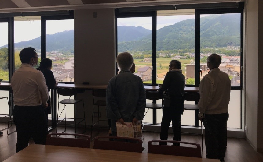 5月20日、御所市防災交流館「Mimore」を見学しました。参加者11名(うち会員7名)。川本御所市議(副理事長)に段取りをしてもらい、榊館長に当日館内を案内していただきました 。